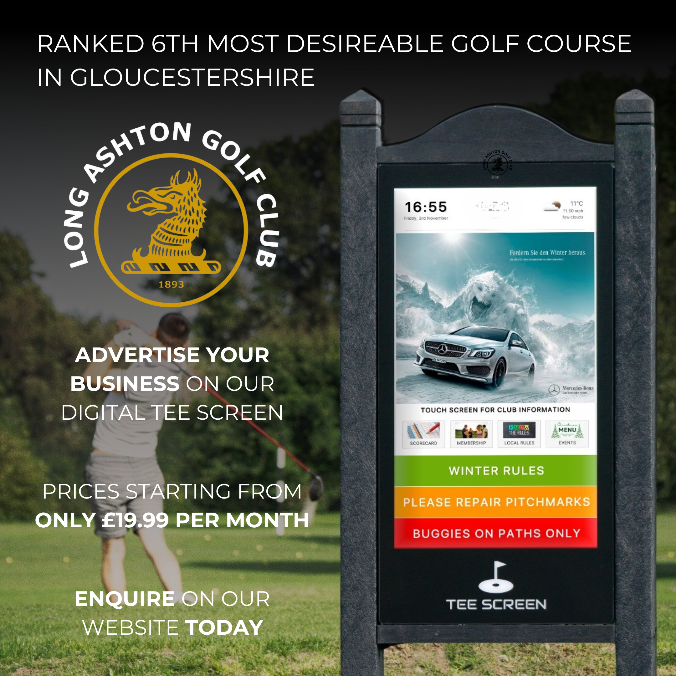 Enquire TodayElectronic Tee Screen installed at your club including a monthly running fee.
